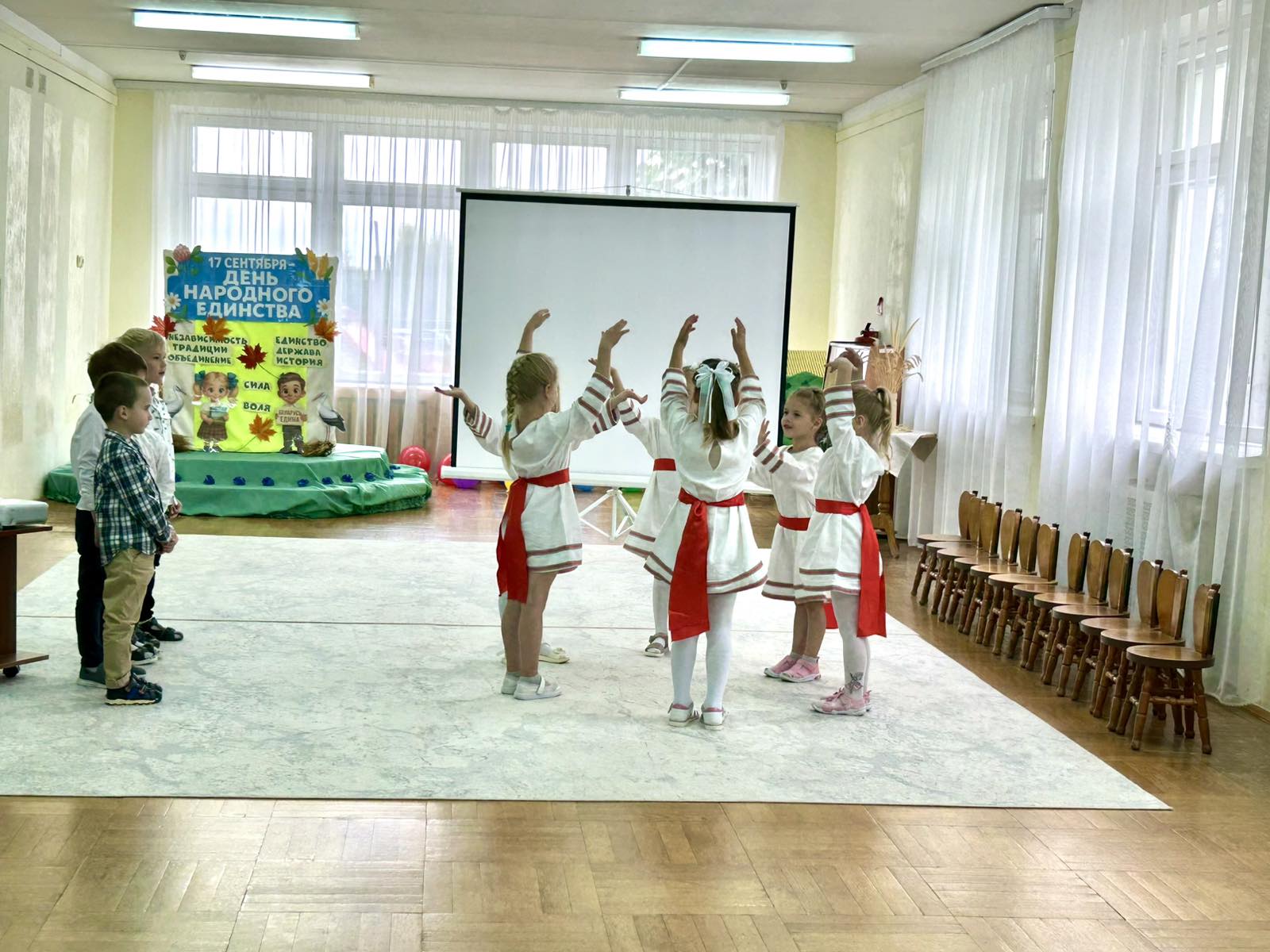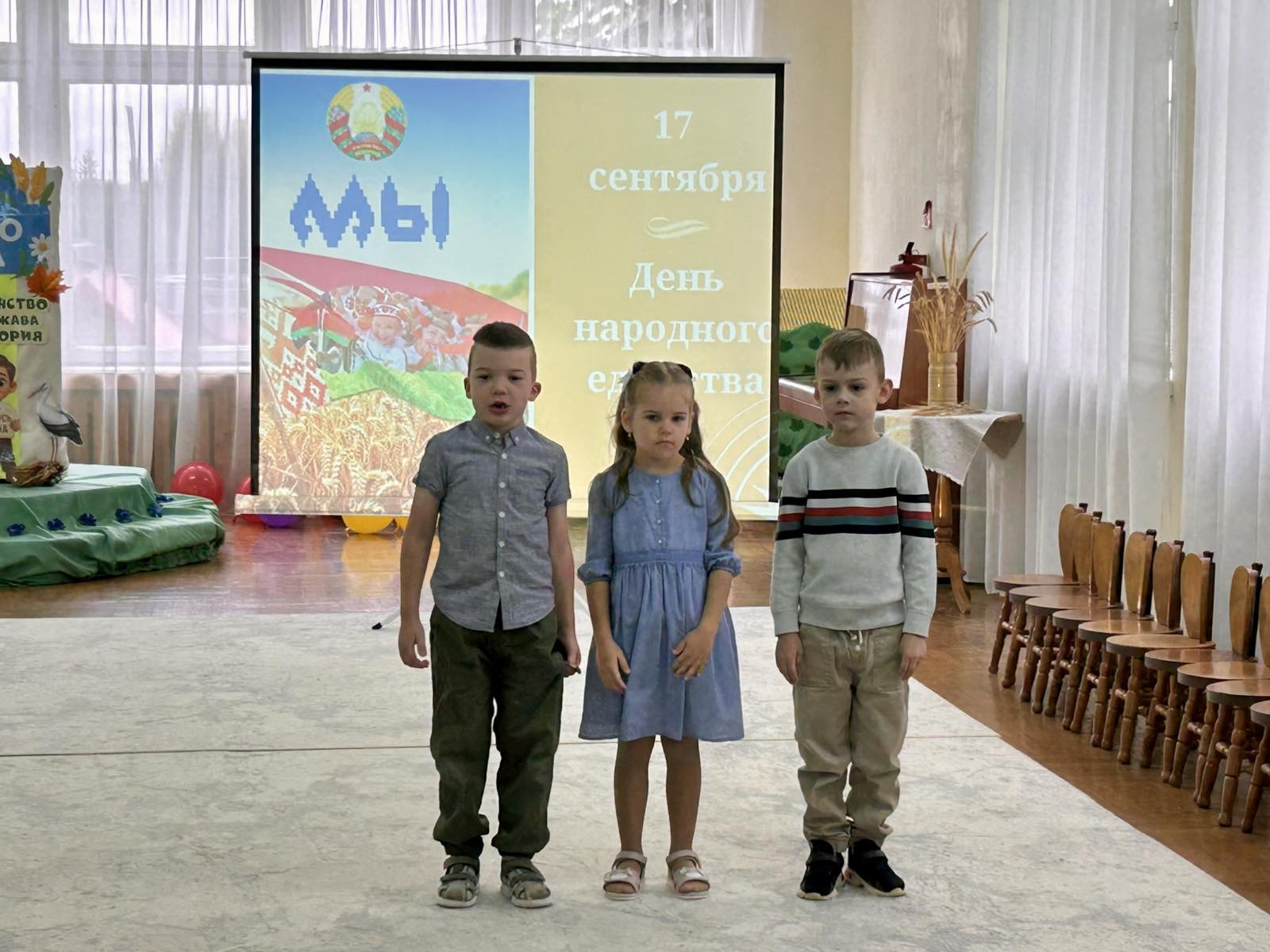 В нашем детском саду прошел праздник, посвященный Дню народного единства. Воспитанники слушали и подпевали Государственный гимн Республики Беларусь, говорили о символике нашего государства, рассказывали стихи о родном крае, принимали участие в подвижных играх. Педагоги в доступной форме рассказали о единстве белорусского народа.
